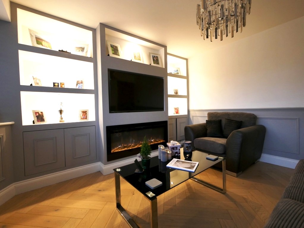 - FEATURE FIRE & DISPLAY SHELVING TO SITTING ROOM