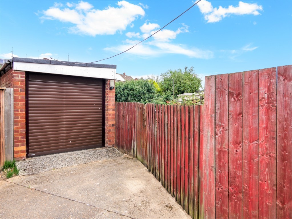 OUTSIDE Nicely set back from the road, the frontage consists of hard stand off-road parking area and a shared driveway which leads to a detached garage, and stocked beds. The rear garden is lightly tiered over two levels, there is a patio, pathway, and greenhouse, with fencing to boundaries, wooden shed.
