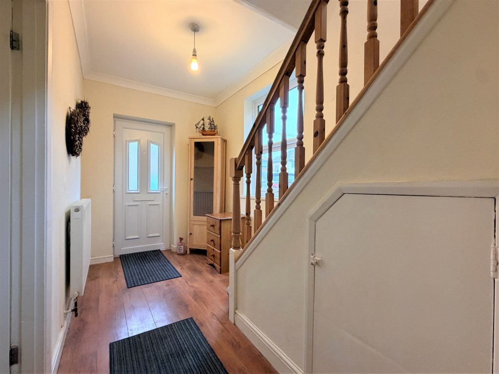 ENTRANCE HALL Double glazed window to side, radiator, under stairs cupboard, stairs rising to first floor, wood effect flooring, doors to.