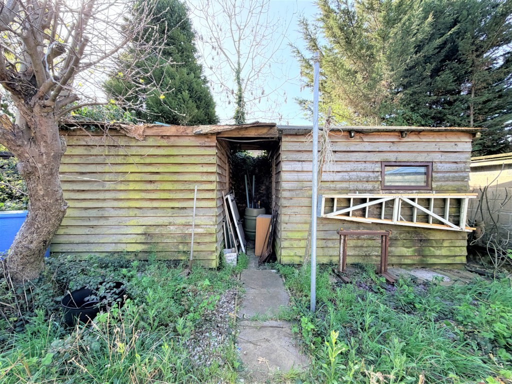 OUTSIDE The frontage provides hard stand off-road parking with gated side pedestrian access revealing a Southerly facing established garden mainly laid to lawn with concrete patio and pathway leading to two wooden sheds (in need of repair or replacement).
