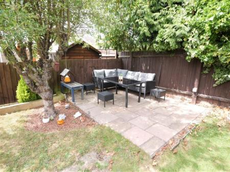 OUTSIDE Block paving to front providing off road parking for 2 cars, shrub border, driveway leading to detached garage, side gate into rear garden which is mainly laid to lawn, fruit tree, variety of bushes and shrubs, patio to the bottom of the garden outside electric socket, gardens all enclosed by fencing.
