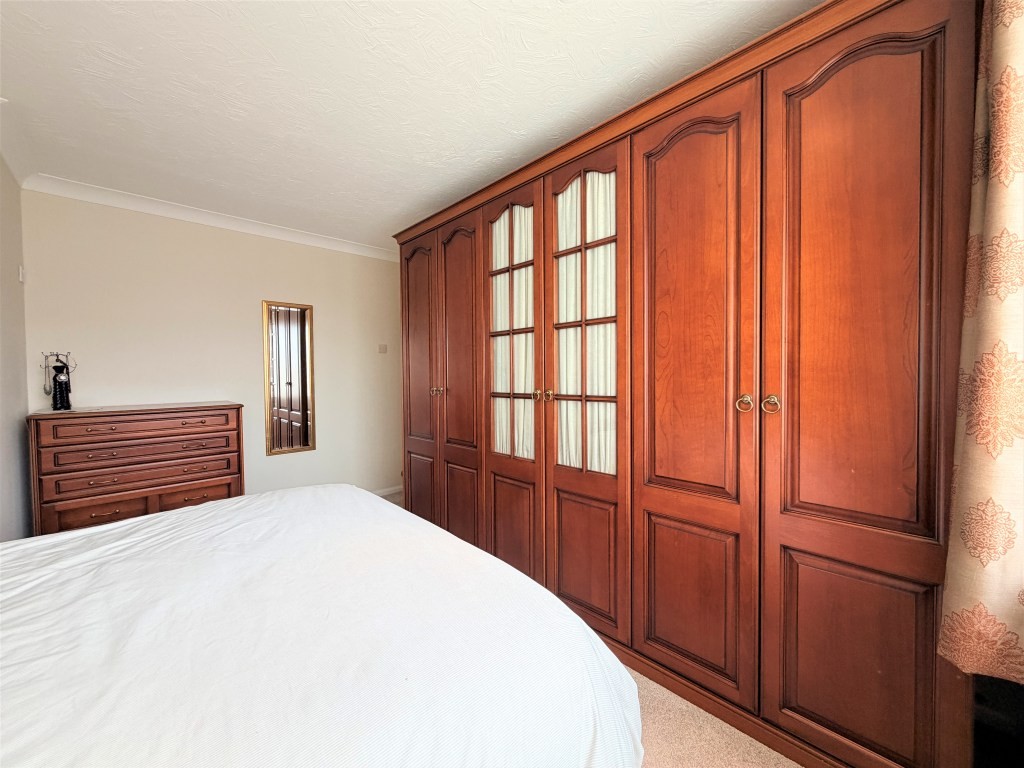 BEDROOM TWO 9' 7" x 12' 2" approx. (2.92m x 3.71m) Double glazed window to rear, radiator, fitted wardrobes and drawer unit with matching bedside tables, built-in airing cupboard housing hot water tank.