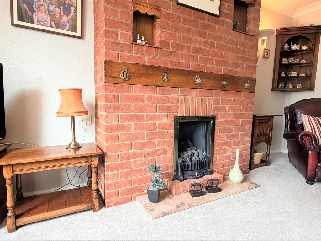 SITTING ROOM 11' x 15' 11" approx. (3.35m x 4.85m) Double glazed window to font, radiator, exposed brick fireplace with coal effect gas fire, two wall uplighters, television point, door to dining room.