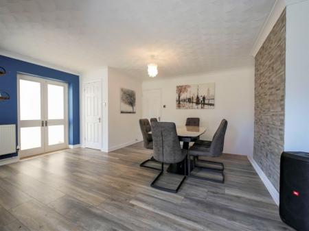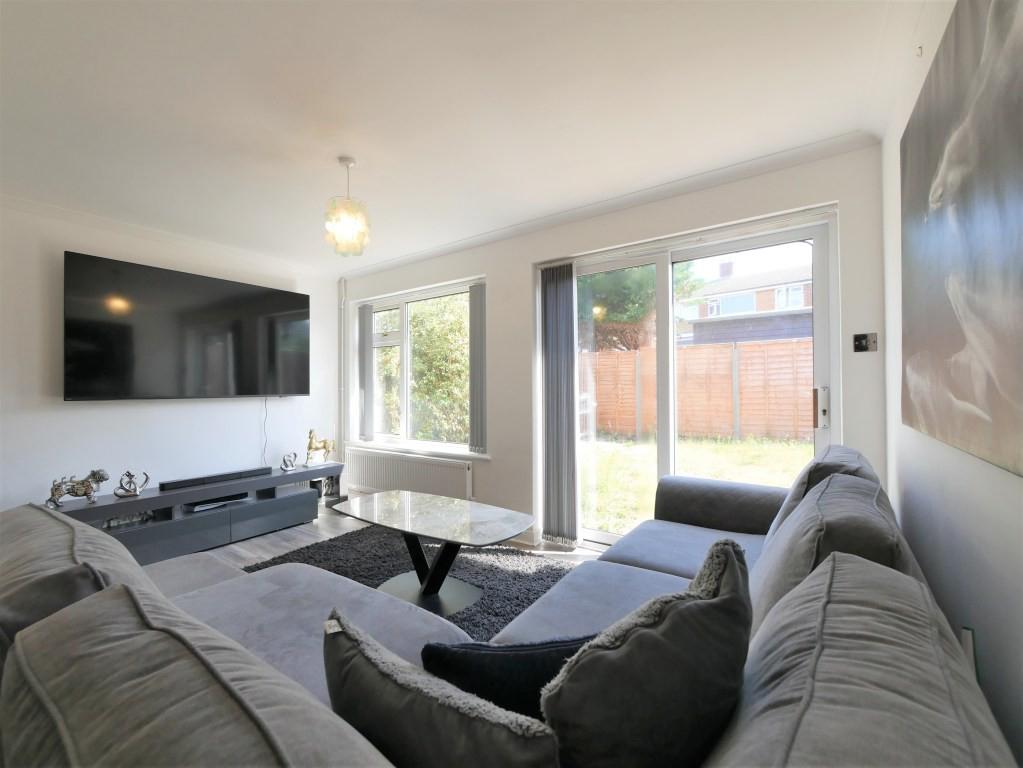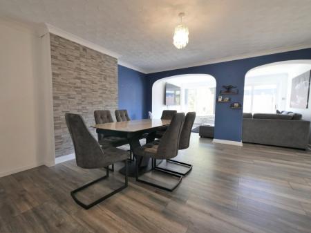 Versatile spacious open plan spaces separated by dual archways, two radiators, feature fireplace surround with shelved recess, under stairs storage cupboard, double doors to additional reception room, double glazed window to rear, double glazed patio style doors to garden.
