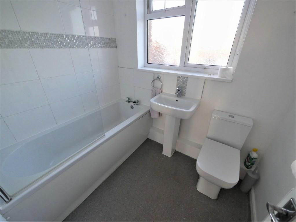 BATHROOM Comprising low level WC, wash hand basin and bath with shower over, non slip flooring, double glazed window to front aspect, radiator, extractor fan.