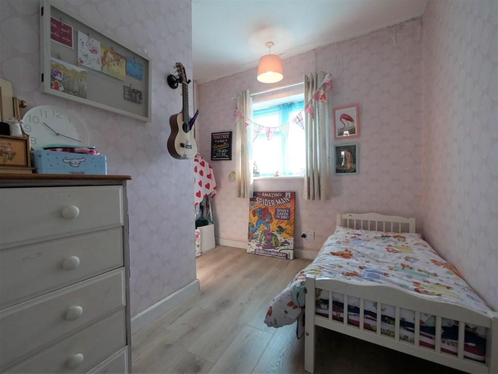 BEDROOM THREE 7' 10" narrowing to 3' 10" x 8' 9" narrowing to 5' 8" approx. (2.39m x 2.67m) Double glazed window to front, wood effect flooring.