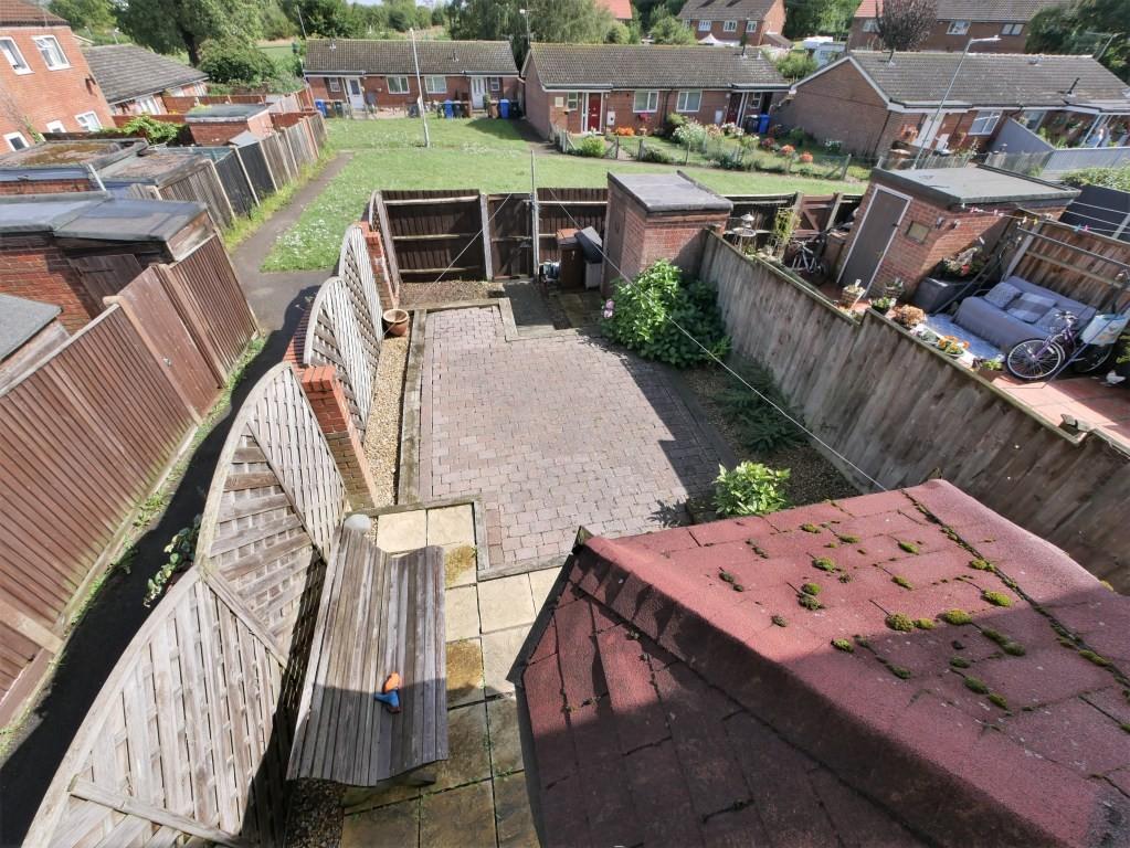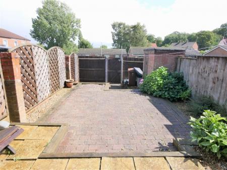 OUTSIDE Enclosed front garden, passage way beside property, rear garden block paved patio area, brick built storage cupboard, rear gate, all enclosed by fencing.