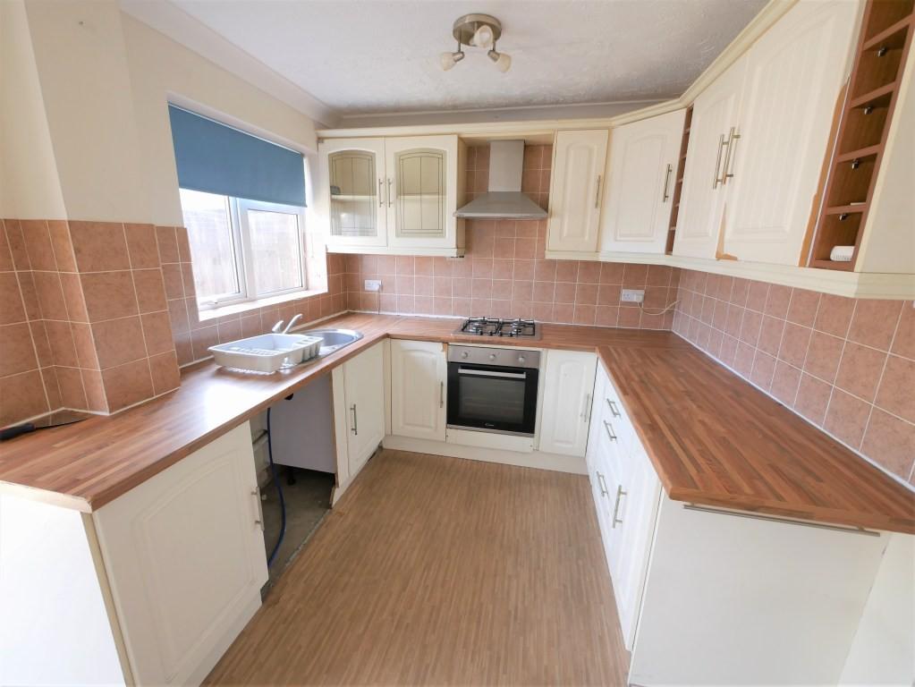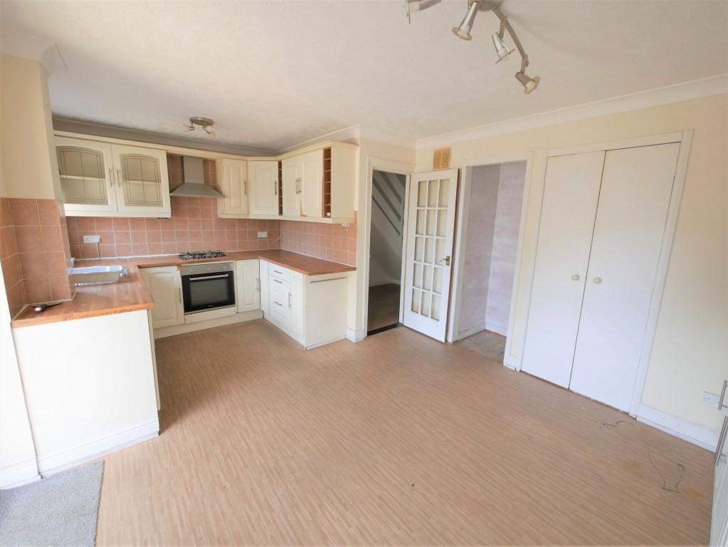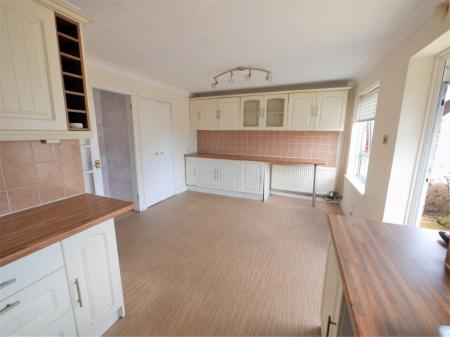 KITCHEN/DINER 17' 10" x 14' 1" (5.44m x 4.29m) Matching eye level and base units with roll edge work tops, 4 ring gas hob with stainless steel extractor over, electric oven, circular stainless steel sink & drainer hot & cold mixer tap, plumbing for washing machine, vinyl floor covering, radiator, open storage space, 2 door walk in storage cupboard with shelving, 2 double glazed windows to rear aspect and double glazed door to rear garden.