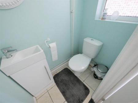 BATHROOM 6' 6" x 5' 6" (1.98m x 1.68m) Comprising low level WC, wash hand basin and bath with electric shower over, radiator, vinyl floor covering, double glazed window to rear aspect.