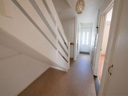 ENTRANCE HALL Vinyl floor covering, radiator, stairs to first floor, storge area under stairs ideal work space, cupboard housing floor mounted gas boiler, door to sitting room and kitchen/dining room.