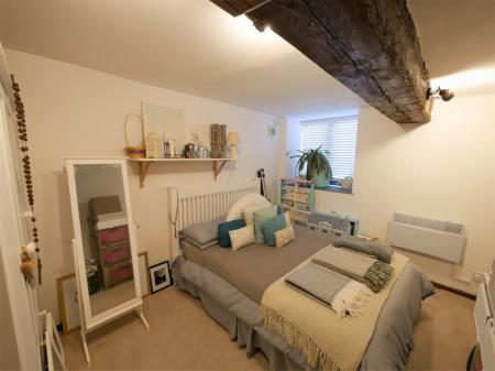 BEDROOM 12' 1" x 9' 11" (3.68m x 3.02m) Carpeted flooring, ceiling beams, wood framed sealed unit window to front aspect, electric heater.