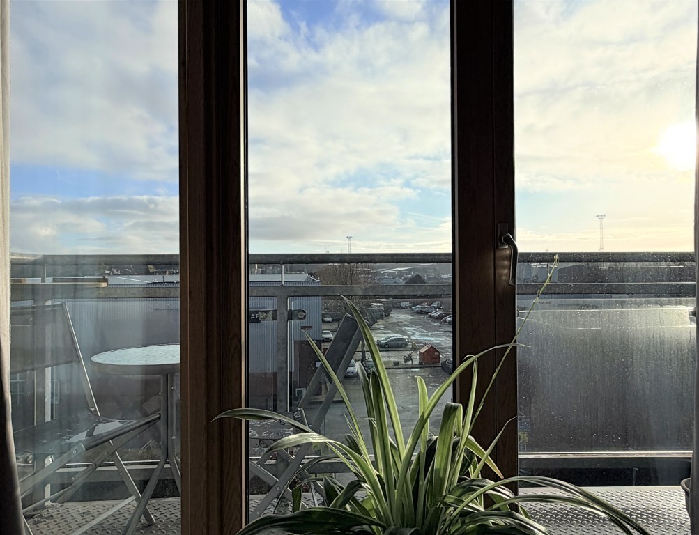 BALCONY Railed and glazed enjoying far reaching panoramic rooftop views with the Orwell Bridge in the distance.