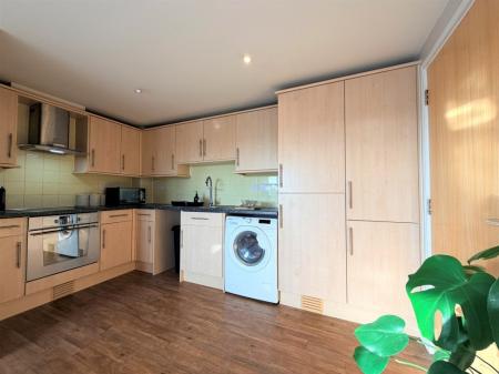 OPEN PLAN LOUNGE KITCHEN & DINING ROOM 18' 1" x 12' 9" approx. (5.51m x 3.89m) Double glazed French doors opening out to balcony, under floor heating, television, telephone and broadband points, fitted kitchen with a range of wood effect base and eye level fitted cupboard and drawer units, granite effect work surfaces, inset stainless steel sink drainer unit with flexi-mixer tap, built-in electric oven and grill with stainless steel extractor hood over, integrated fridge-freezer, under counter spaces for washing machine and slim-line dish washer, tiled splash backs, inset ceiling lights.