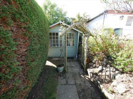 OUTSIDE Front garden is mainly laid to lawn with flower & shrub bed, long driveway providing plenty of off road parking, detached garage, gate into rear garden step down to lawn area, flower & shrub borders, summer house, all enclosed by hedging and fencing.