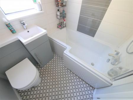 BATHROOM 6' x 5' 3" (1.83m x 1.6m) Comprising low level WC, wash hand basin with storage under, bath with electric shower over, double glazed window to rear and side aspect, wall radiator, extractor fan.