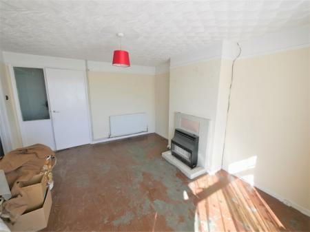 SITTING ROOM 13' 10" x 11' 8" (4.22m x 3.56m) Vinyl floor tiles, double glazed window to front aspect, radiator tiled fireplace with gas fire (not tested) door to bedroom.