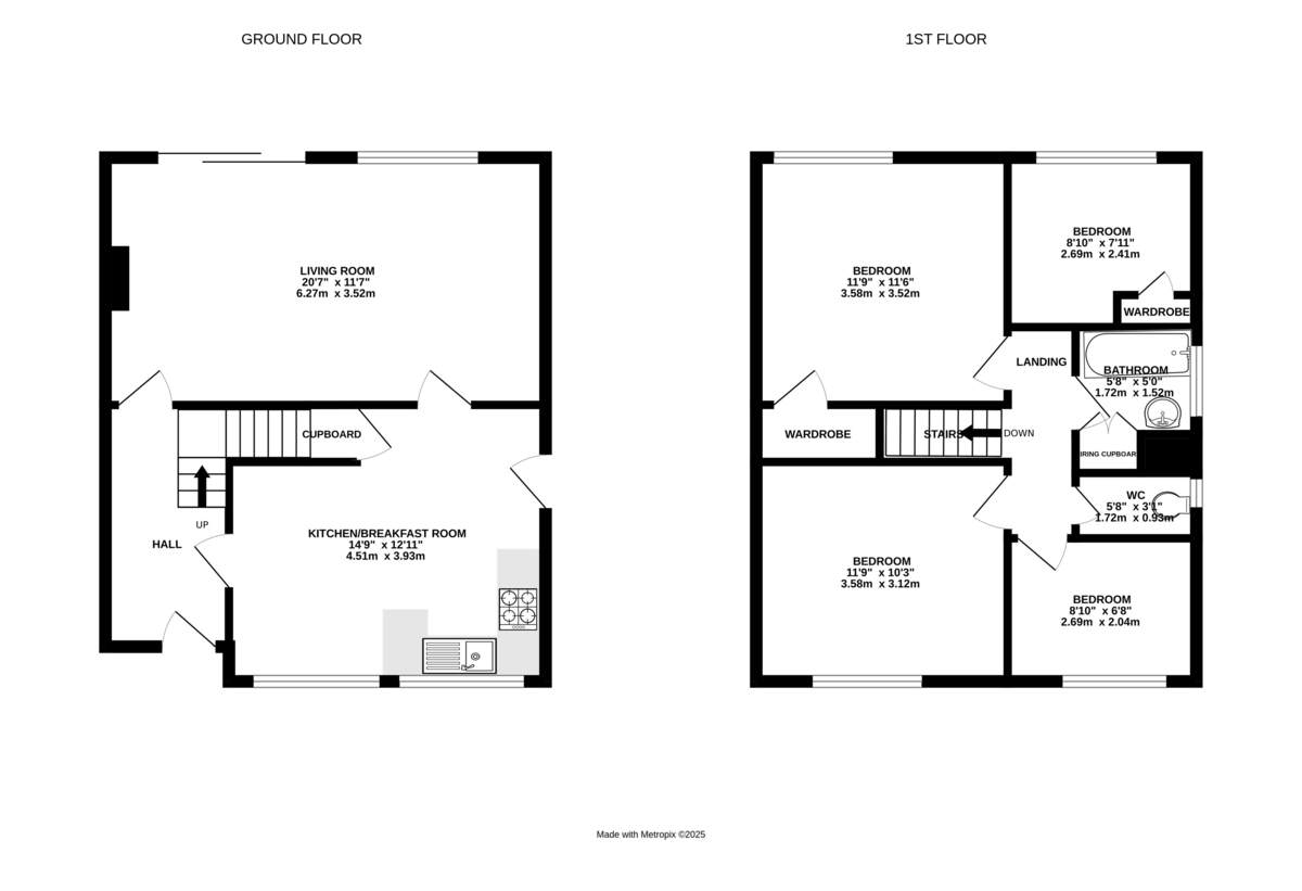 BEDROOM ONE 11' 7" x 10' 10" (3.53m x 3.3m) Window to rear aspect, storage cupboard and radiator.