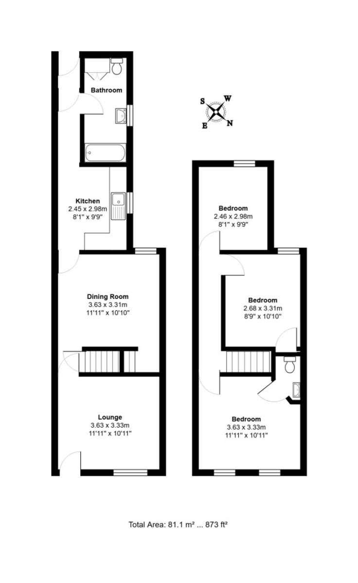 BEDROOM THREE 8' 1" x 9' 9" approx. (2.46m x 2.97m) Double glazed window to rear, radiator.