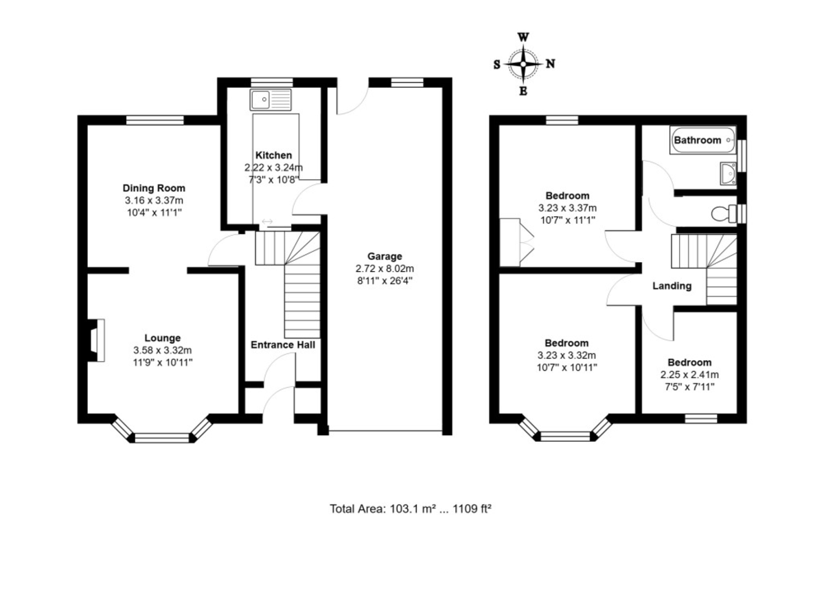 SITTING ROOM 11' 9" x 10' 11" approx. (3.58m x 3.33m) Double glazed bay window to front, radiator, television point, Sky broadband.