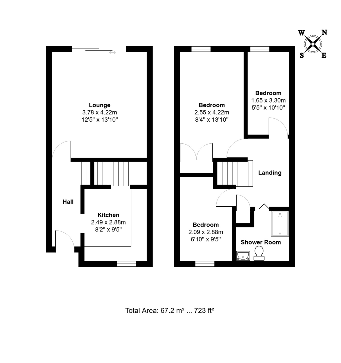 STAIRS Laminate stairs and landing, loft hatch, airing cupboard housing Worcester boiler, doors to bedrooms and shower room.