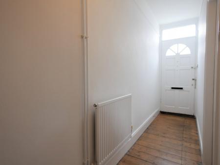 ENTRANCE HALL Radiator, stripped wooden floor boards, decorative bookend archway, white painted panel doors to sitting and dining rooms, stairs rising to first floor.