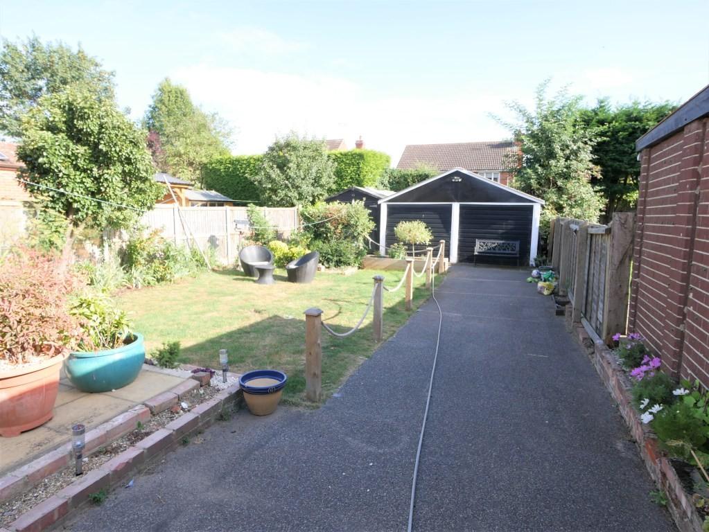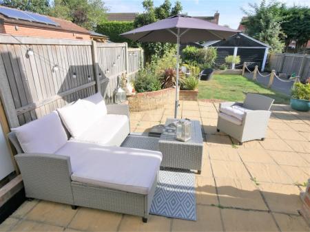 OUTSIDE  Off road parking for 3 cars to front, side gates with driveway leading down to double garage with up & Over roller doors, electric connected, timber garden shed, rear garden is laid to lawn, flower & shrub borders, paved patio area for entertaining.