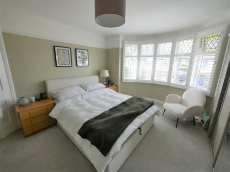 BEDROOM 1 12' 9" x 12' 2" (3.89m x 3.71m) Carpeted flooring, double glazed bay window to front aspect with plantation shutters, 4 door built in wardrobe, school style radiator.