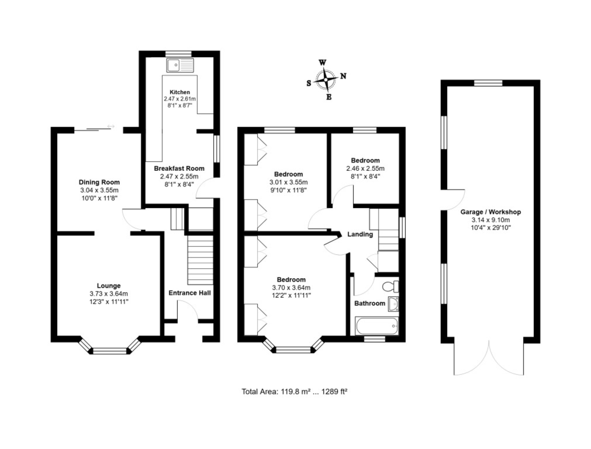 GARAGE & WORKSHOP 10' 4" x 29' 10" approx. (3.15m x 9.09m) Double door entry, two double glazed windows to side and one to rear, personal door to garden, concreted floor, mains power and lighting.