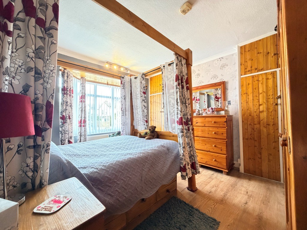 BEDROOM TWO 9' 10" x 11' 8" approx. (3m x 3.56m) Double glazed window to front, radiator, two built in wardrobes into alcoves, wood effect flooring.