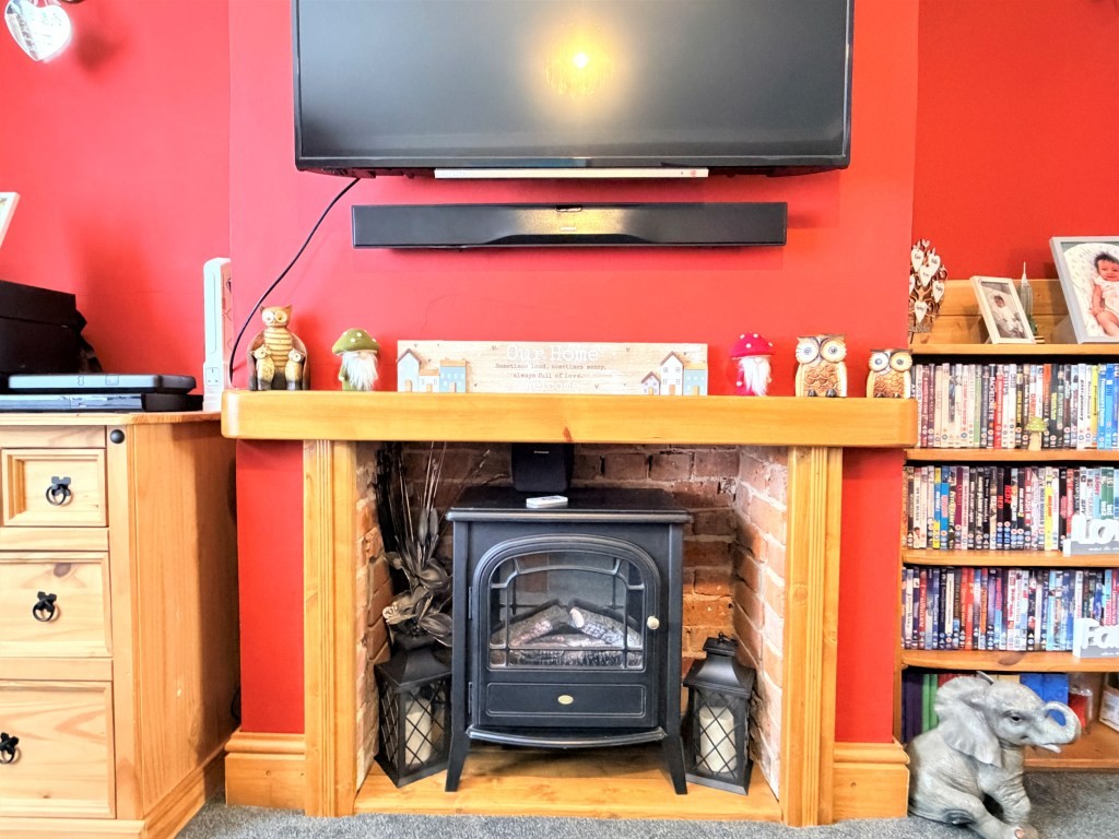 SITTING ROOM 12' 3" x 11' 11" approx. (3.73m x 3.63m) Double glazed bay window to front, radiator, television point, broadband point, exposed brick feature fireplace.