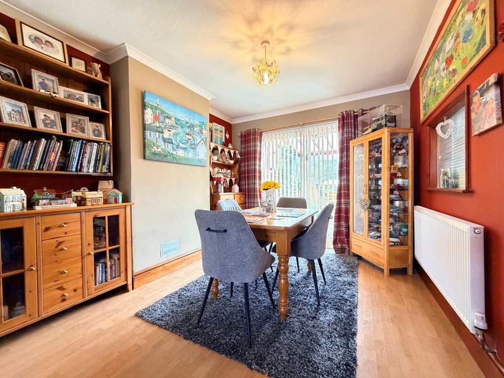 DINING ROOM 10' x 11' 8" approx. (3.05m x 3.56m) Double glazed patio style doors to rear opening to garden and sheltered entertainment patio area, wood effect flooring, opening through to sitting room.