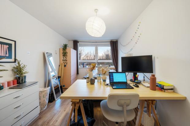 This lovely apartment boasts an open plan contemporary gloss white fitted kitchen and living area which leads out to the private balcony, three spacious double bedrooms, a modern bathroom suite and separate W.C. The property boasts wood floors throughout, lots of storage and access to a large communal garden.