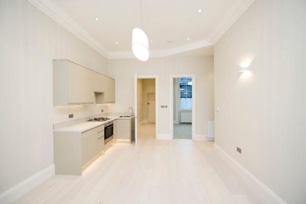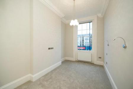 The apartment has been refurbished to the highest standard by its current owner crafted to offer a unique blend of contemporary design and period charm. The property offers a grand entrance hallway, leading to a spacious, bright and breath-taking open plan reception area with the centre piece chandelier and down lighting, a fully fitted high specification kitchen. The property has a gorgeous spacious main bedroom, a 2nd double bedroom and a stunning bathroom suite with heated floors, led down lighting, black gloss wash basin, bath with Japanese shower head and a storage cupboard. This home boasts a lovely terrace for entertaining and is bursting with period features such as the high ceilings, cornicing, Tall doors and large sash windows with surround detailing.