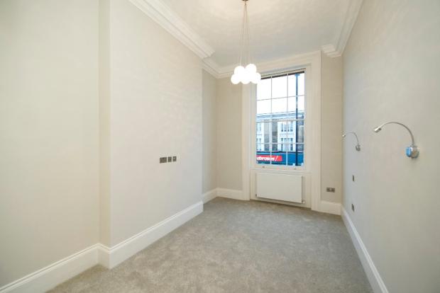 Stunning spacious bedroom boasting high ceilings with led spotlights, enormous ceiling height sash windows, high skirting boards, wall down-lights, carpets, Telephone point, TV aerial point and the feature piece elegant shattered balls chandelier.