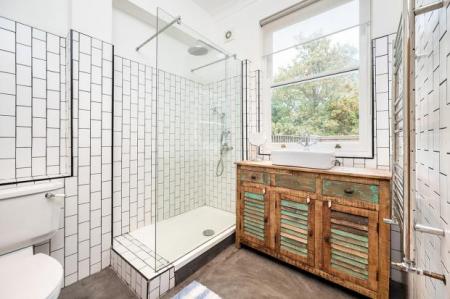 This stylish one bedroom comprises of a bright reception room with large floor to ceiling sash windows, an open plan kitchen with black granite worktops, a spacious bedroom that leads out through patio doors to a spacious and peaceful private roof terrace and a gorgeous bathroom that perfectly mixes Victorian style with modern comforts of a walk in shower with rainfall shower-head and heated towel rail. The apartment boasts engineered oak wood floors, spotlights in the ceilings, oozes lots of unique charm and has a share of Freehold.