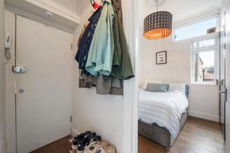 This lovely home offers bright and spacious living consisting of an open plan living room and a contemporary fitted high spec kitchen with rustic oak surfaces, gloss white units. A bedroom with stylish mirrored deep wardrobes and a luxury fully tiled shower room with walk in shower, heated towel rail and vanity unit. The luxury apartment boasts hard wood floors, large vertical sash windows, high ceilings, storage, a feature rustic fireplace surround, designer lighting. The property also has access to a spacious and private unofficial terrace space.