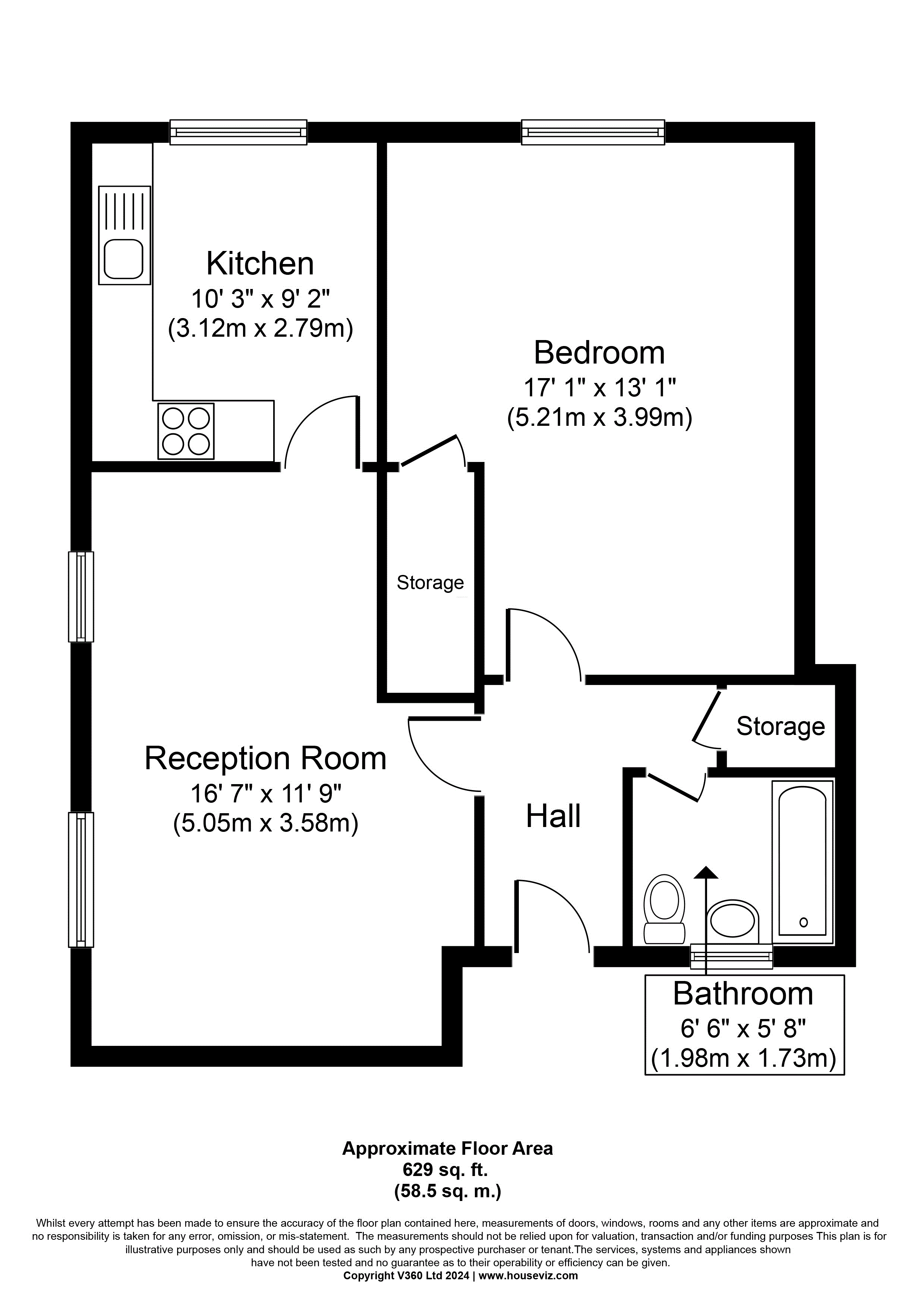 Ideal first time buy, this first floor apartment offers approximately 625 SQ.FT. of living space. Upon entering the property there is a hallway leading to all the rooms with fitted storage. The living room benefits from natural light via the two double glazed sash windows.