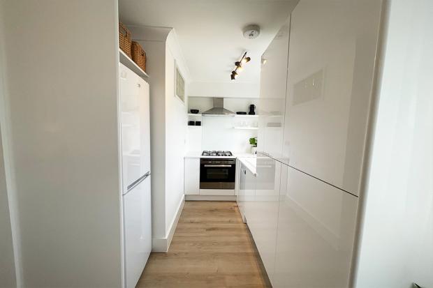 This beautiful home is set on the 3rd floor of this purpose built development. The property has been lovingly refurbished throughout by its current owners boasting an L shaped open plan living room and brand new fully fitted kitchen, a stunning brand new black and white themed bathroom and a very spacious bedroom which leads out through double patio doors to a private decked roof terrace. The property boasts wood floors throughout, neutral decor and designer fixtures and fittings.