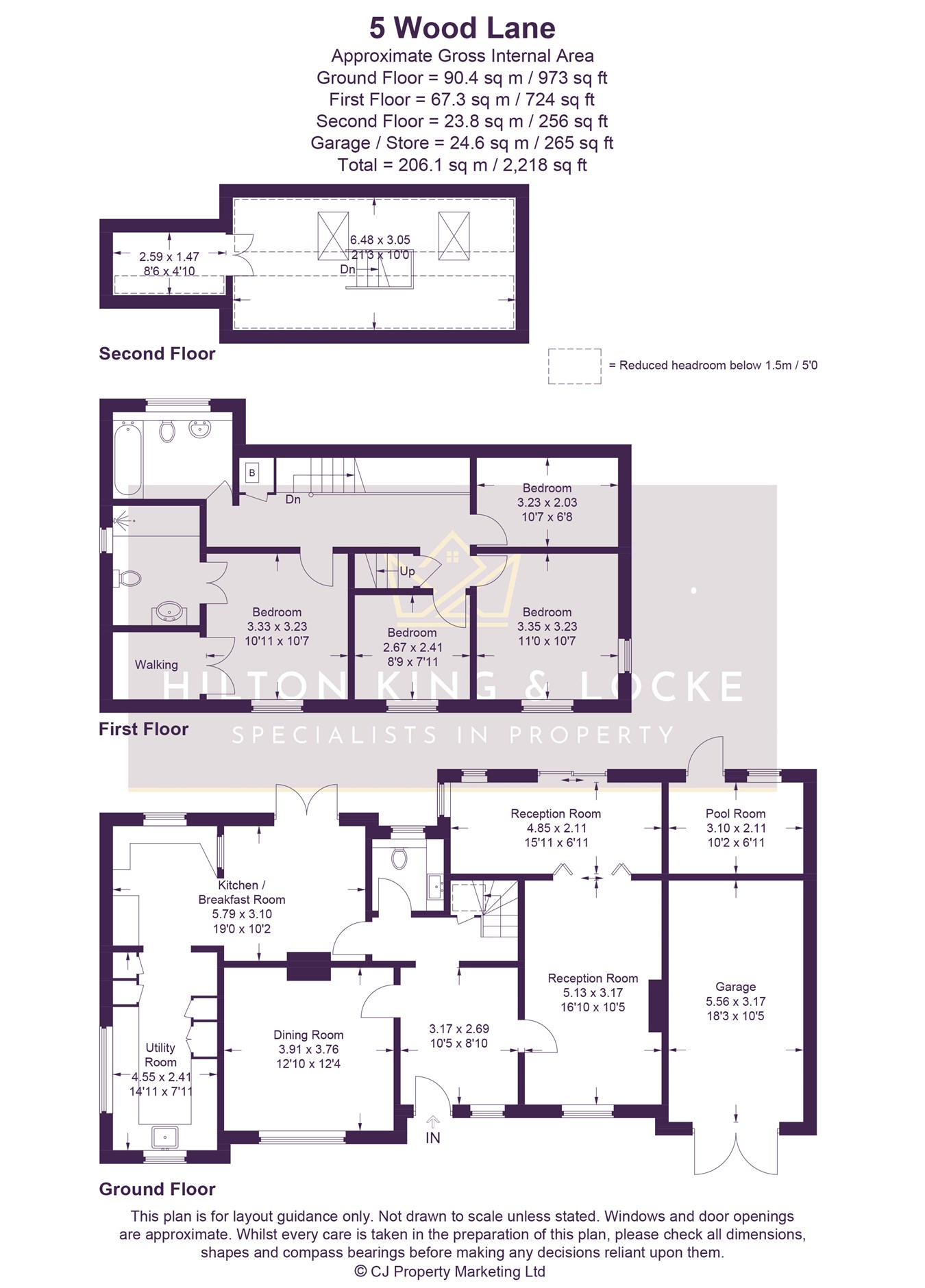 As you step into the welcoming hallway, there is an immediate sense of warmth and space. To the left, the dining room sets the perfect tone for family meals, just beyond, the kitchen and breakfast room connect to provide a practical space for everyday living. There are two further reception rooms, the main of which has a feature fireplace and front aspect window, and doors lead through to the second reception room overlooking the private rear garden and swimming pool, which has a paved patio and store/pump room located to the rear of the garage. The cloakroom/wc completes the ground floor accommodation.