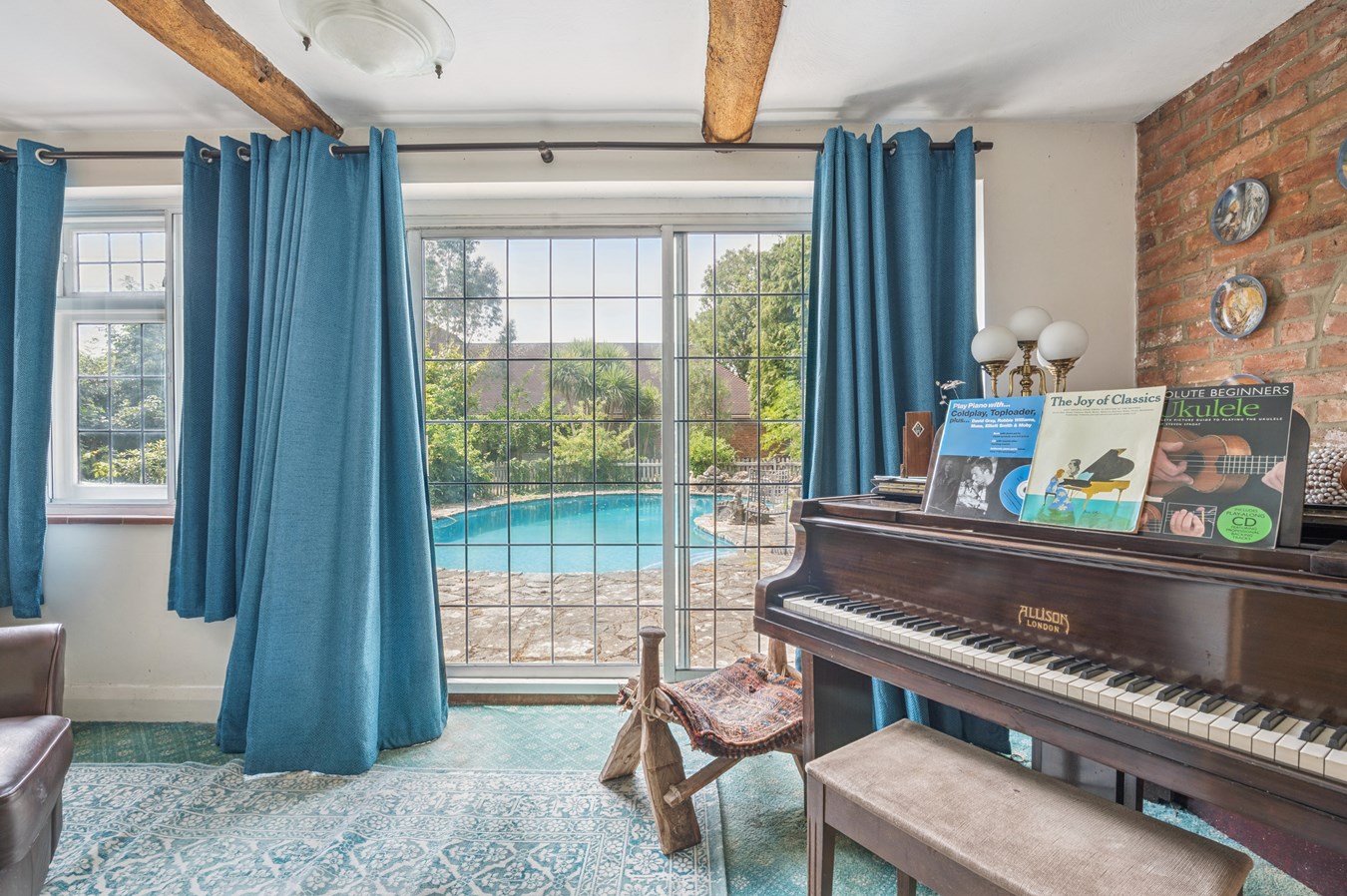 The gardens are a highlight in themselves, mature and private with a variety of trees that offer privacy and dappled shade, while borders and seasonal blooms provide vibrant colour throughout the year. At the heart of the garden lies the swimming pool, creating a private oasis, the perfect space to spend long summer afternoons with friends and family, poolside barbecues, or refreshing early-morning swims.