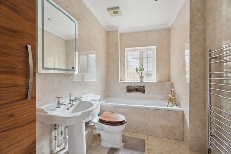 Upstairs, bedroom one is 19'1 x 14'2, has two sets of fitted wardrobes and a large ensuite which has a panel bath plus a separate shower cubicle. Bedroom two measures 13'4 x 13'3, has built in wardrobes plus an ensuite, and bedrooms three, four and five are all great sized doubles, all having wardrobes, and each offering a front aspect. A family bathroom completes the first floor.