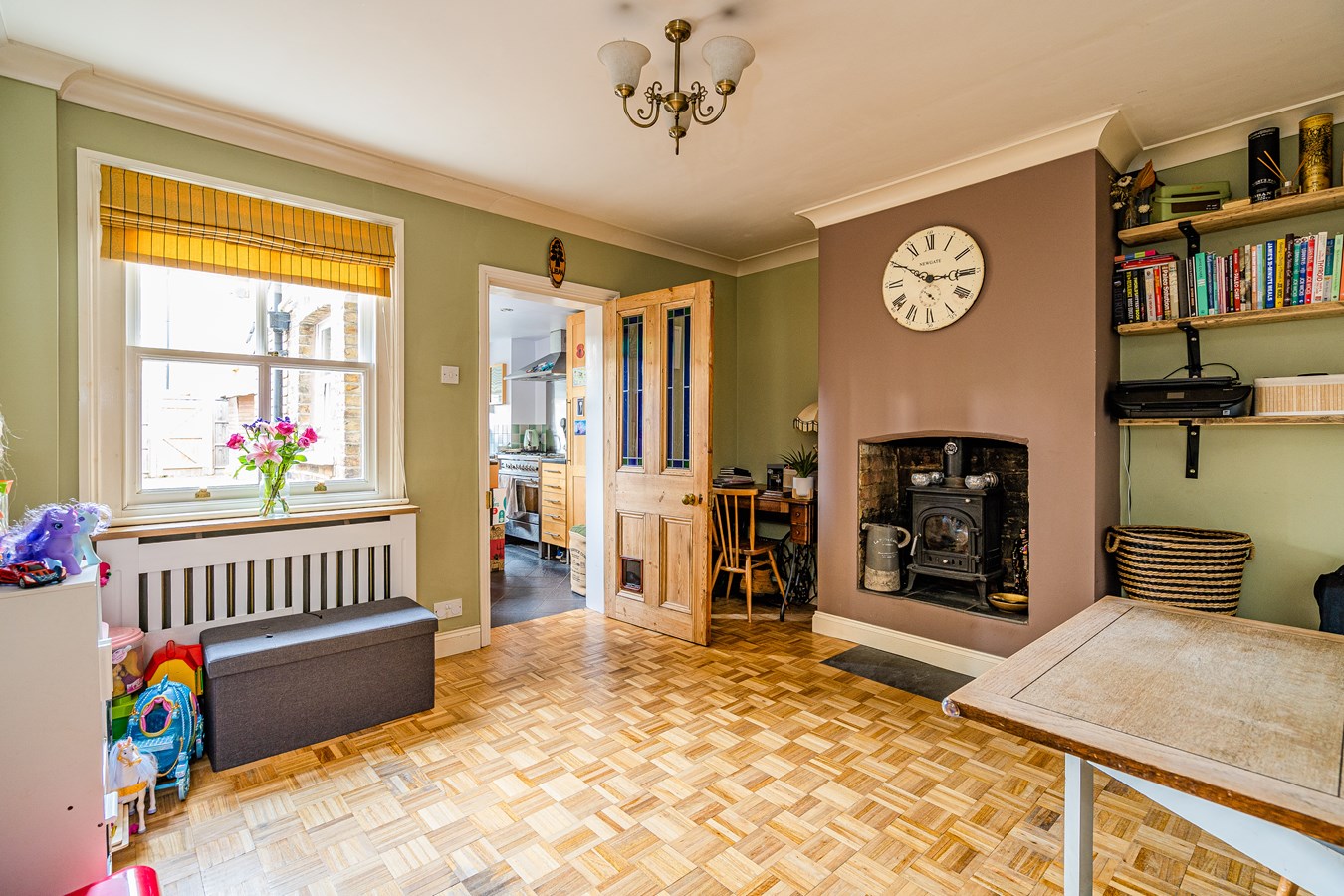 This lovely cottage includes a (12'5 x 11'1) sitting room with parquet flooring and cast iron Victorian style fireplace, (14'2 x 12'5) dining room with fitted wood burner, (13'5 x 7)' fitted kitchen with integrated fridge/freezer, first floor accommodation consisting of a (12'5 x 11') front aspect master bedroom, bedroom two and family bathroom, plus a (16'11 x 12'5) bedroom three on the second floor. There are also double glazed sash windows, gas central heating and an attractive, secure rear garden which has a patio, flower bed and lawn, 'Parking is not allocated and available on local residential streets'.