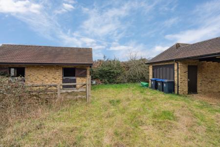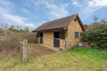 Upstairs, the property offers three double bedrooms, each with plenty of space for freestanding furniture. The master bedroom is complete with an ensuite bathroom, providing a private retreat. The large family bathroom completes the upper floor. Externally, the property offers ample parking and is set behind private gates, ensuring privacy and security. This rarely available farmhouse provides an excellent opportunity for buyers seeking a spacious, well-located family home with the potential to add their own touch. The outdoor area is a paradise, with two outbuildings adding to the property's allure. Stables and a garage add to the property's potential for diverse uses.