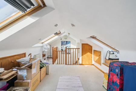 The second floor forms an excellent private space, offering a spacious double bedroom with extensive eaves storage. This top-floor retreat is perfect for guests, older children or parents wanting additional privacy.