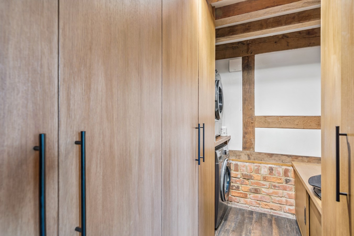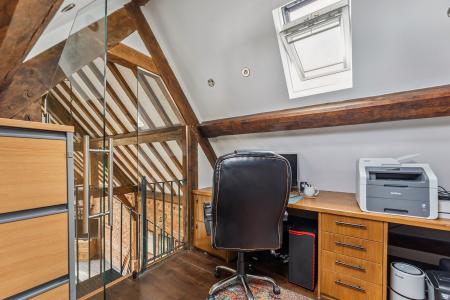 Located off the back of the kitchen and also via the sitting room, is an inner lobby which leads to a utility and an 18th Century restored 23' x 13'6 barn/games room, with its original vaulted and beamed ceilings. There is also a set of stairs here that lead to a mezzanine style office, which overlooks this quite unique space.