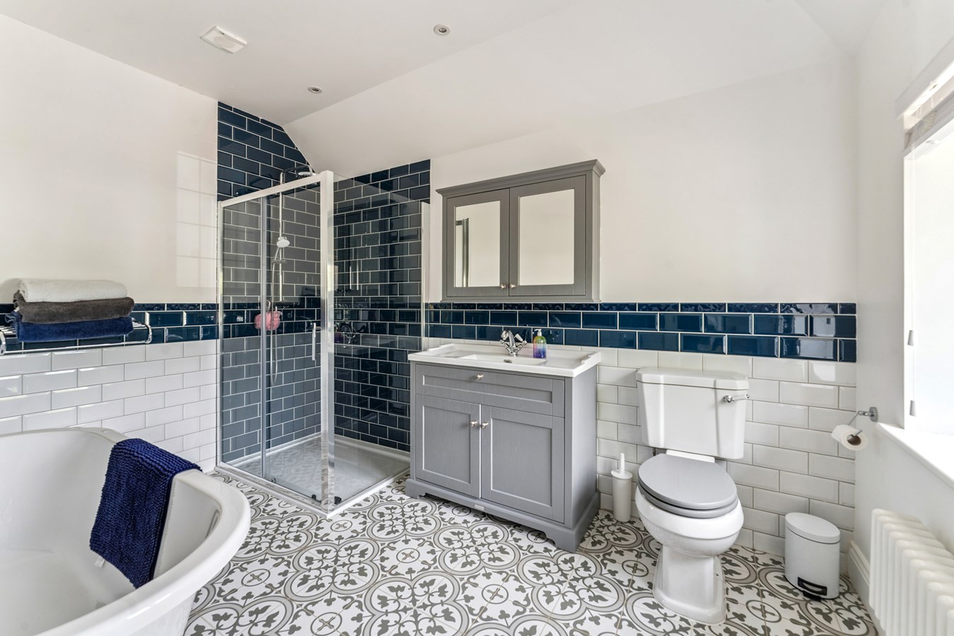 Moving upstairs and onto the first floor there are four first floor bedrooms and two bathrooms. All of these bedrooms are found directly off a spacious landing, with the 15'2 x 12' master bedroom offering a twin aspect overlooking the garden and an ensuite. Bedroom two also overlooks the garden, as does bedroom three, while bedroom four offers a twin aspect overlooking the front. A contemporary styled family bathroom, with stand alone bath and separate shower cubicle, completes this floor.