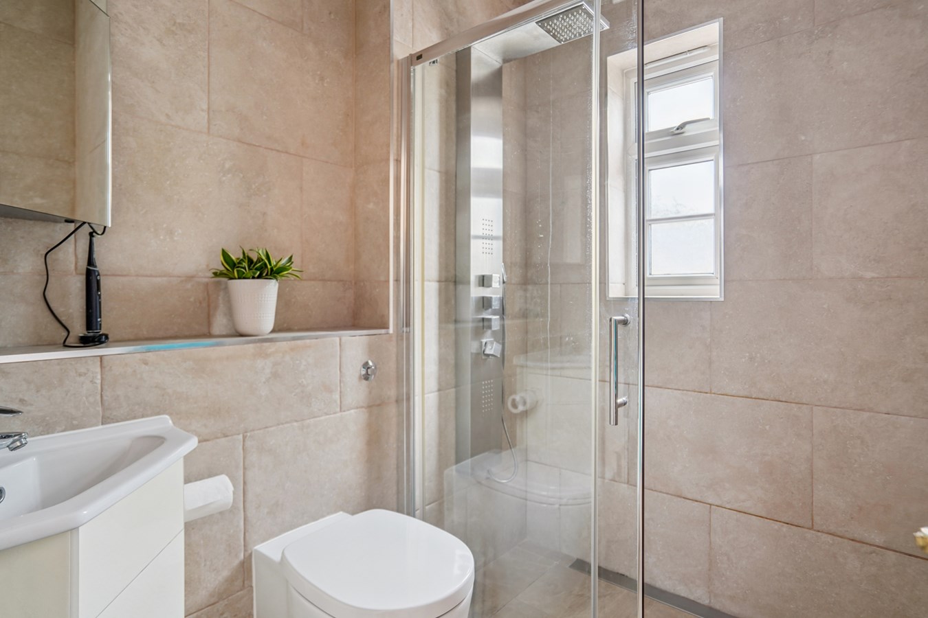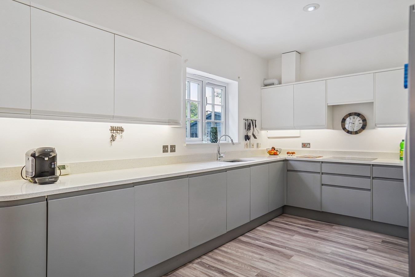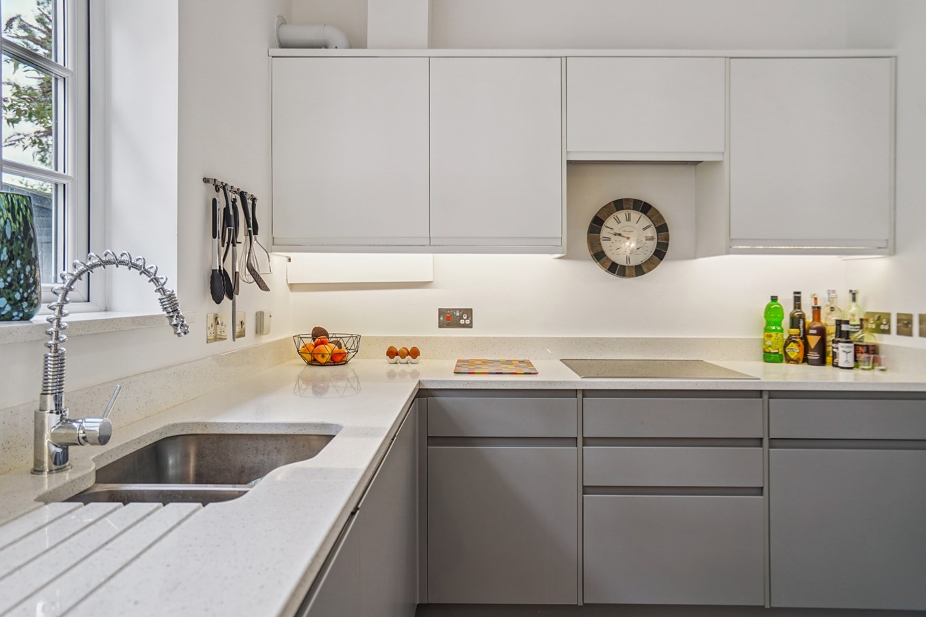 In total the accommodation on offer is an impressive 1063 square ft, and includes a superb, open plan 34'1 x 20'1 living room/kitchen. This great space provides multiple windows over a double aspect, ensuring this area is flooded with natural light and includes stylish, sleek kitchen units with extensive integrated appliances and quartz worktops, with the living area having space to both formally dine and to relax in.