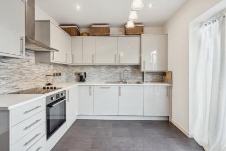 This modern and stylish development consists of just nine high-quality two- and three-bedroom homes, offering a peaceful yet convenient living environment. The property has been owned by the current owner since it was built, who has meticulously maintained and enhanced the home with thoughtful improvements, including a redesigned kitchen and fitted wardrobes throughout.