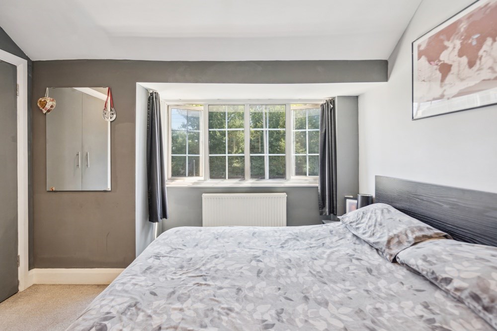 Upstairs, the property continues to impress with a bay-fronted master bedroom measuring 14' x 12' and featuring fitted wardrobes. A second 8'7 x 8'2 bedroom overlooks the garden and is served by a well-appointed family bathroom.