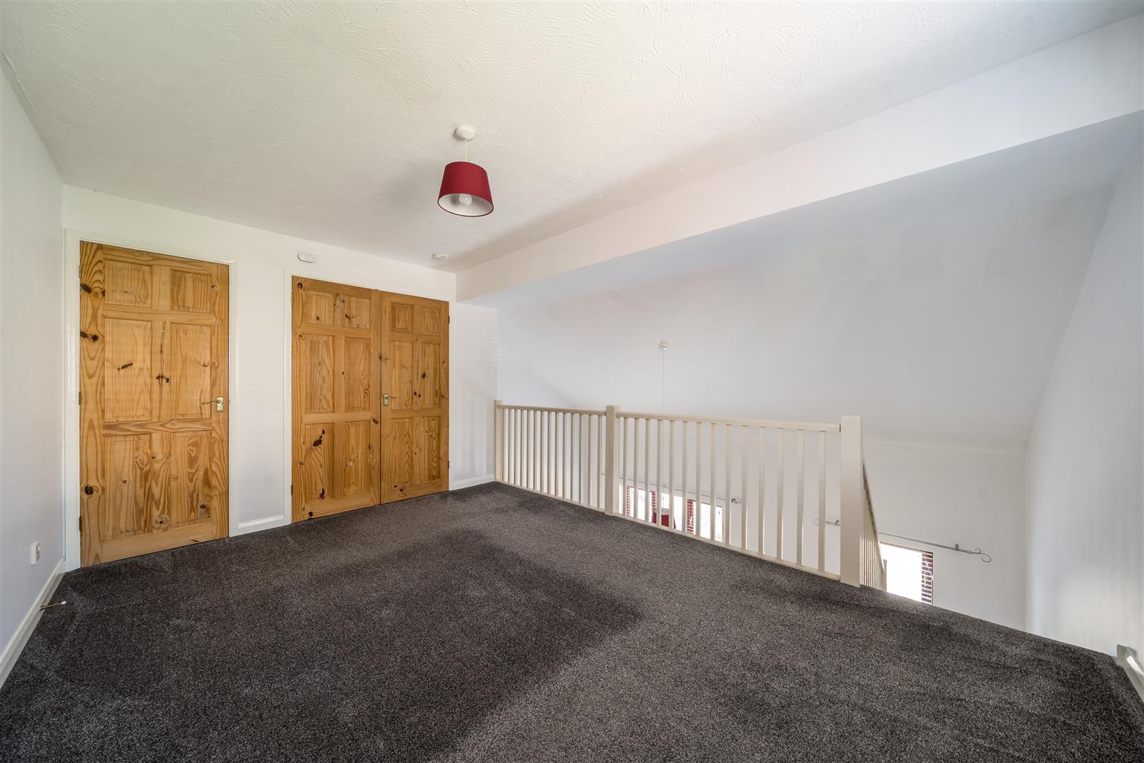 Beyond the entrance hall is the main open-plan living area and kitchen with its vaulted ceiling bringing a light and airy feeling to this space. Stairs lead from here to a large mezzanine bedroom with a built-in double wardrobe and additional storage cupboard.